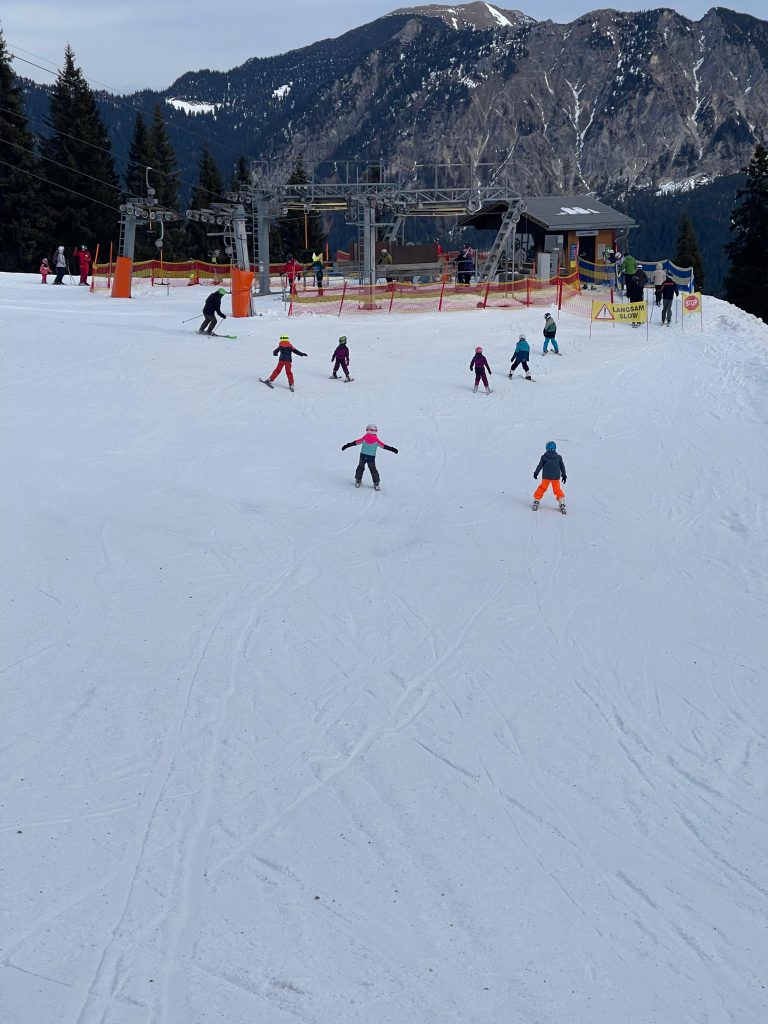 Am vergangenen Samstag fand am Neunerköpfle im Tannheimer Tal der zweite Skikurstag in diesem Jahr statt. Neben unserem geplanten Fortgeschrittenenkurs konnten wir auch unseren Anfängern vom Kurs in Westerheim eine Fortsetzung anbieten. Das Förderband im Tal ließ die bangen Sorgen manch eines Skikursteilnehmers schnell verfliegen, den Berg wieder selbst erklimmen zu müssen. So machten die Anfänger schnell Fortschritte und konnten nach der Mittagspause an den Schlepplift wechseln. Mit Pauli als Vorfahrer sah man bei jeder Liftfahrt weitere Fortschritte.