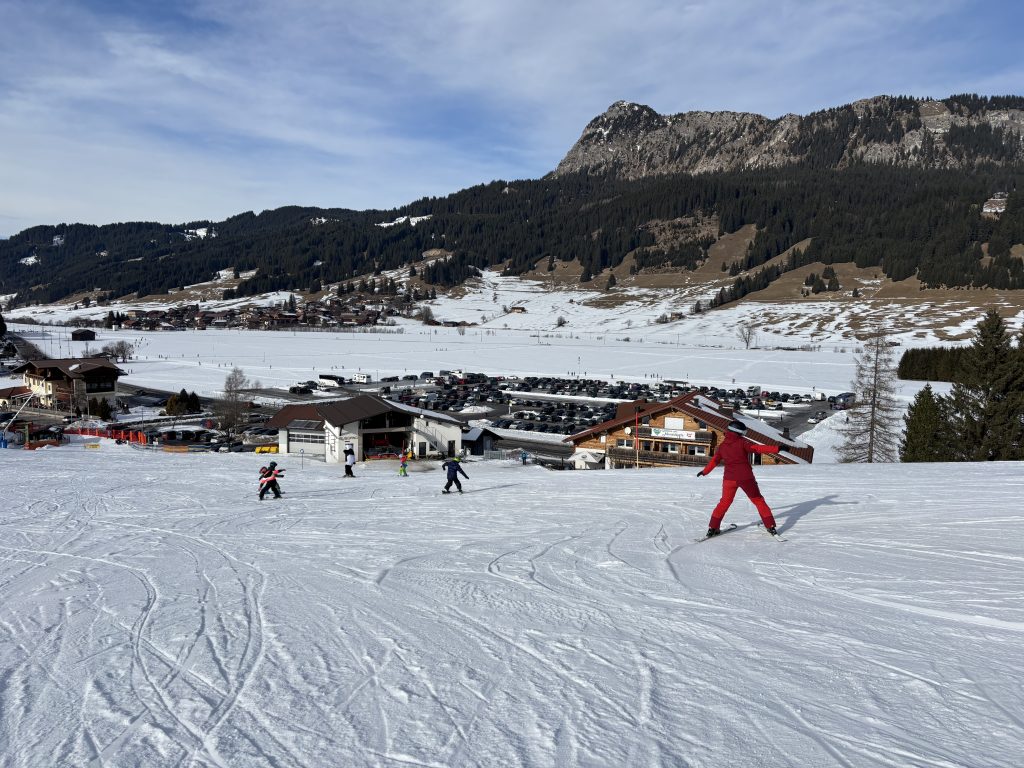 Die Fortgeschrittenen nutzten jenen Lift zum Einfahren und Einteilen, bevor es mit der Gondel hoch hinaus ging. Oben zeigten sich griffige, steile Pisten, die alle Skikursteilnehmer mit Unterstützung unserer Schneesportlehrer angestrengt, aber souverän meisterten.
